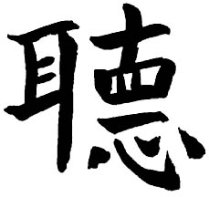 And here is the Chinese character for listening: on the left, the sign for ears, while on the right, from top to bottom, the signs for eyes, full attention, and heart. What a beautiful visual metaphor for the engagement of listening.